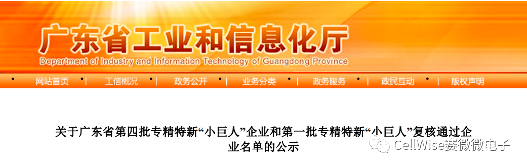 近日,廣東省工業(yè)和信息化部公布了第四批專精特新“小巨人”企業(yè)名單,廣東賽微微電子股份有限公司榮列其中。