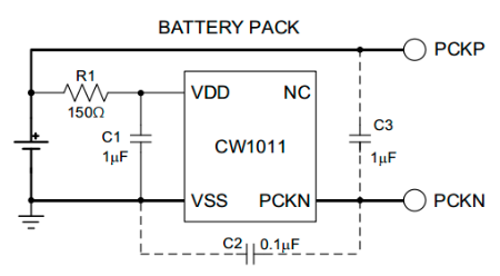 CW1011為單節(jié)鋰電池保護(hù)芯片,支持高精度過(guò)壓、欠壓、充電過(guò)流、放電過(guò)流和短路保護(hù)。芯片內(nèi)部集成了54mΩ導(dǎo)通電阻的Dual MOSFETs;其靜態(tài)工作電流為2.5μA,并支持休眠模式,功耗低至20nA。CW1011的封裝為DFN-6,尺寸為2.0mm*1.5mm。